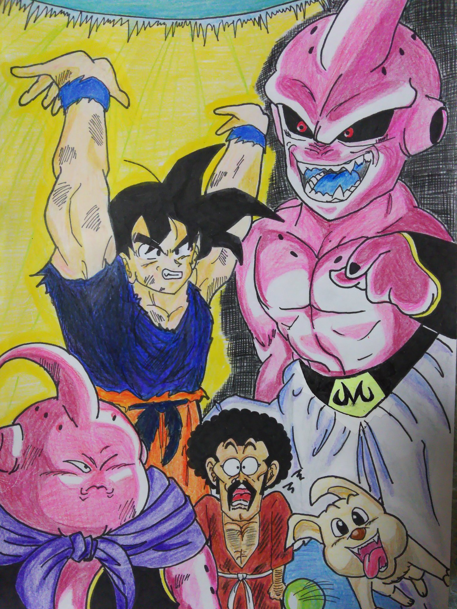 サニー 好きなシーンありすぎて迷いましたが 魔人ブウの時の悟空の元気玉に サタンとブウ 善 とベエ 犬 の関係も好きなので取り入れてみました ドラゴンボール ヤングじじい